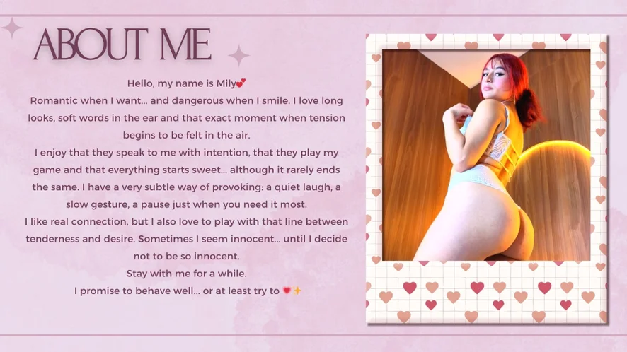 Špinavá mluva, Exhibicionismus, Pokyny k masturbaci, Roleplay, Sexuální hračky, Masáž, Olejová show, Podpatky, Ženský výstřik, Zezadu, Ahegao, Plácání po zadku, Erotický tanec, Velbloudí palec, Prstění, Striptýz, Kuřba, Masturbace, Dildo nebo vibrátor, Footfetish, Deepthroat, Mezi kozy, Orgasmus, Hardcore, Nahoře bez, Footjob